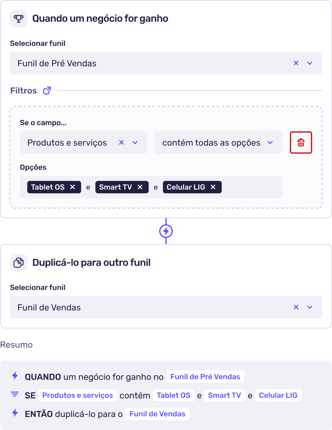Com os novos filtros e parâmetros, é possível segmentar automações por produto, origem do lead, motivo de perda, responsável e até campos personalizados. Isso permite criar fluxos muito mais específicos e alinhados à realidade de cada operação comercial.